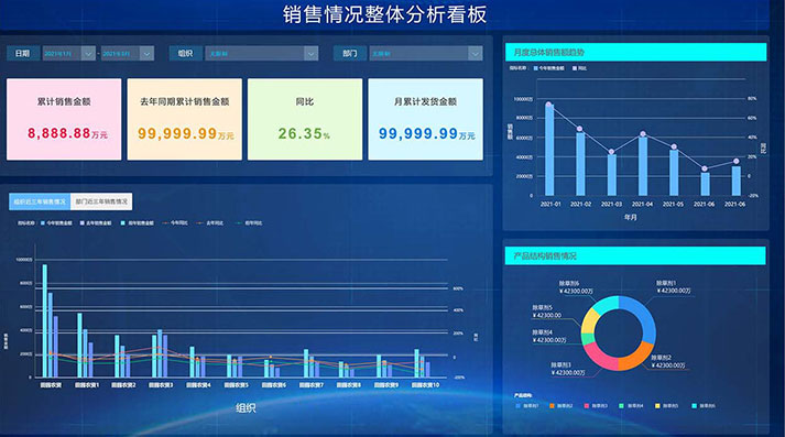 - 通過數(shù)據(jù)分析看板,可以直觀發(fā)現(xiàn)、分析、預警數(shù)據(jù)中所隱藏的問題,及時應對業(yè)務中的風險,發(fā)現(xiàn)增長點